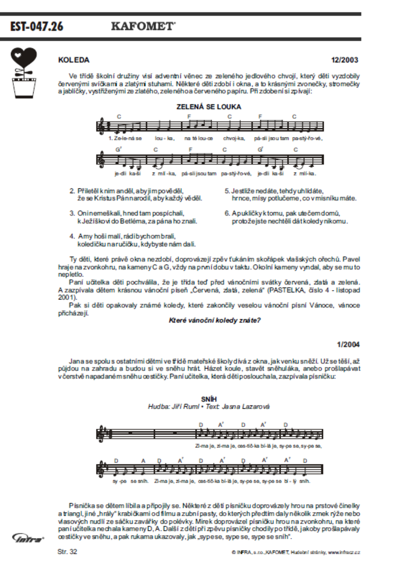 Využití: Vytváření kladného vztahu k hudbě a zpěvu. Rozvíjení hudebních, rytmických, poslechových i pohybových dovedností dětí.