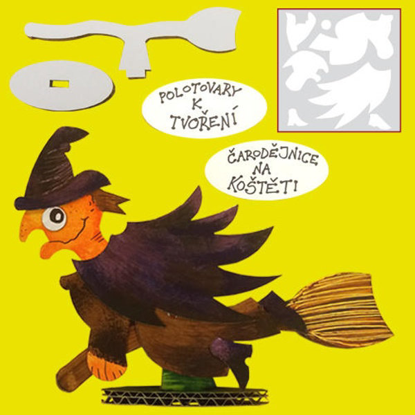 Toto balení je vhodné pro mateřské, základní školy a jiné organizace. Balení obsahuje: - 30 ks koště z 5VL lepenky 16x 6 cm 30 ks karta s polotovary k tvoření – letící čarodějnice - 30 ks stojánek.