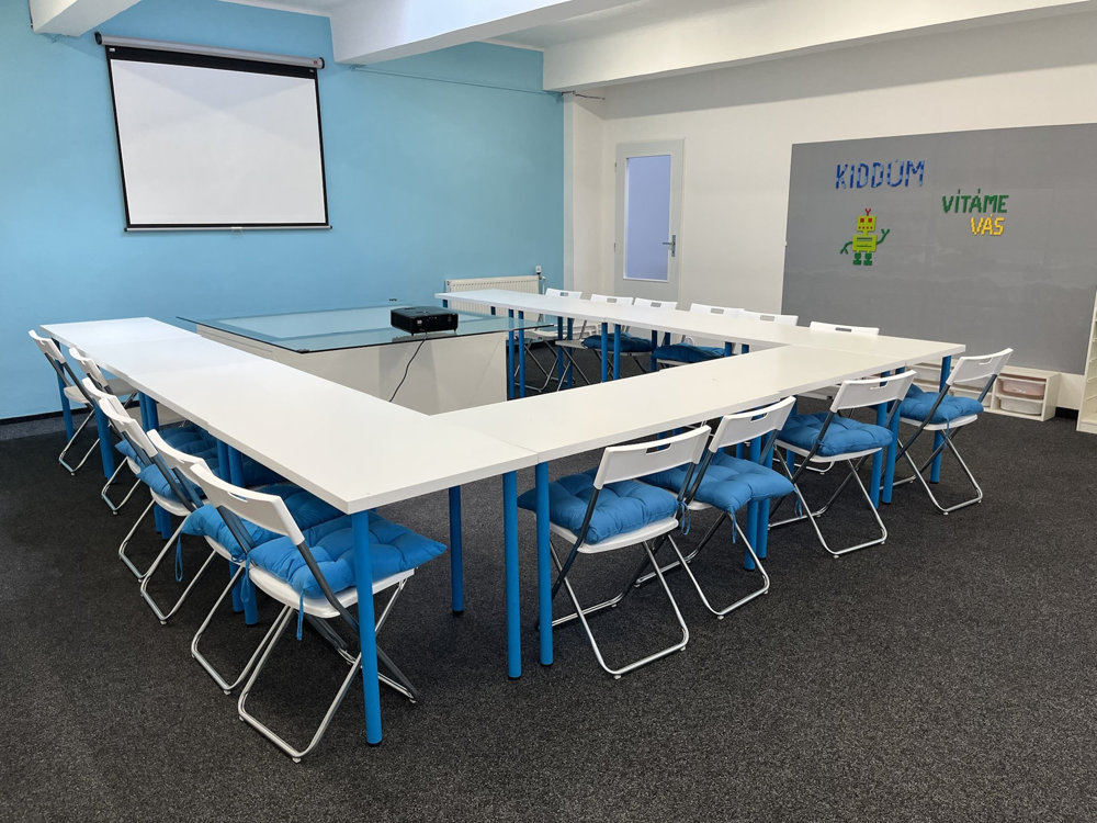 Učebny se nacházejí v 1. patře budovy Kiddum ve vnitrobloku.